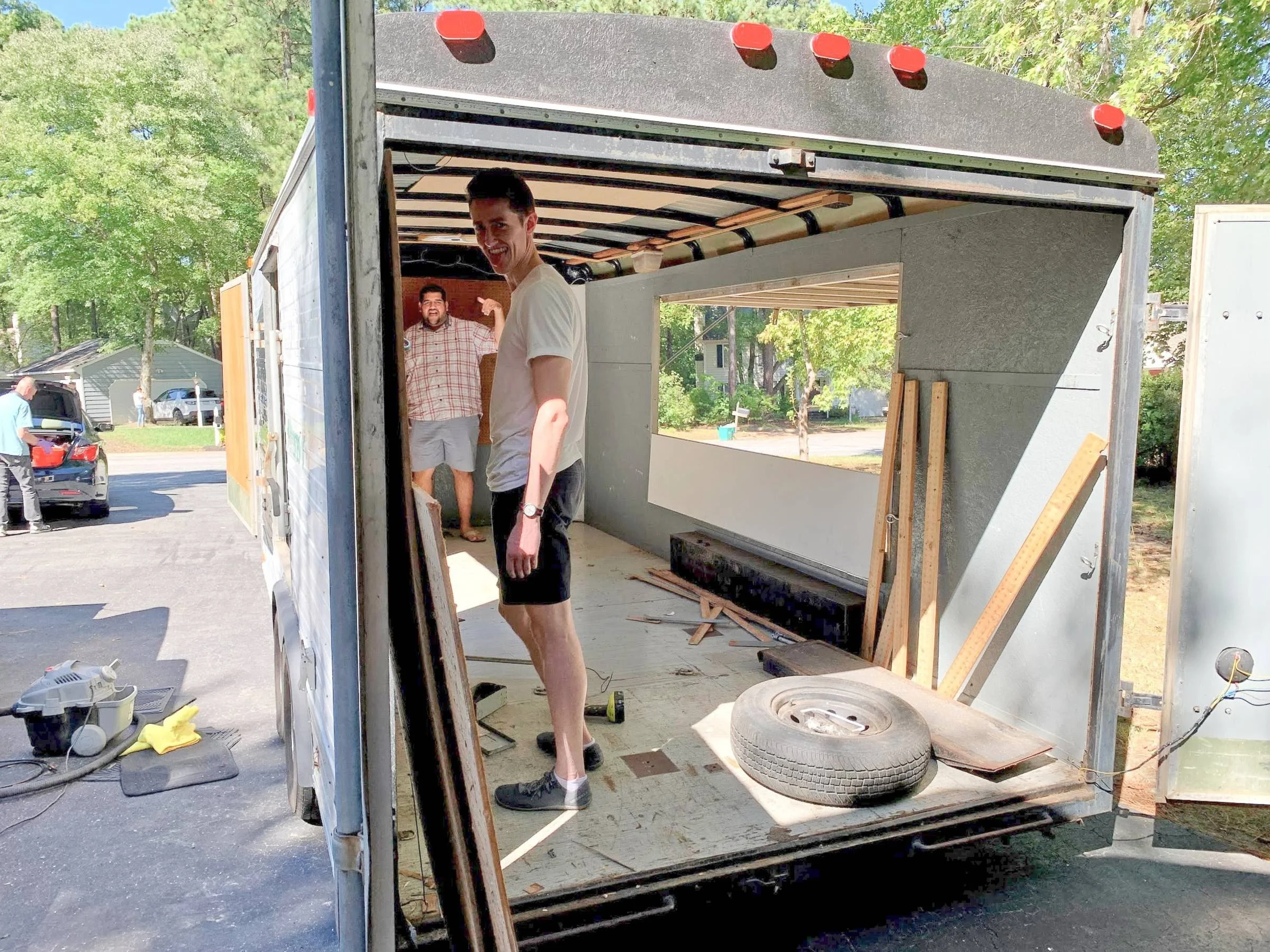 My forearms were covered in sawdust and metal shavings. I was ensconced in what had been a finished trailer a few short hours ago. Now it was a gutted tin can on wheels. The wall panels, floor boards, aluminum window trim, and electrical conduit lay in a pile on the driveway.